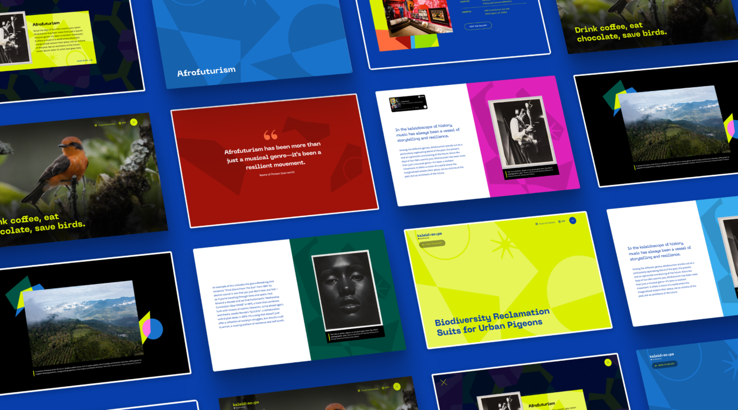 Forum One was selected as the Smithsonian’s digital and strategic partner to bring the Kaleidoscope project to life. What began as a loosely defined “tour” of in-person and virtual stops quickly evolved into a dynamic, omnichannel experience that would connect with audiences in innovative and meaningful ways.